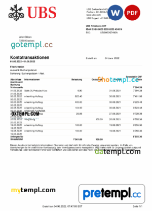 Monacan UBS bank visa signature card, fully editable example in PSD format