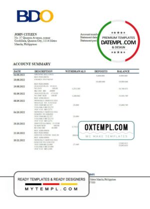 Maldives Bank of Maldives account statement Word and PDF template