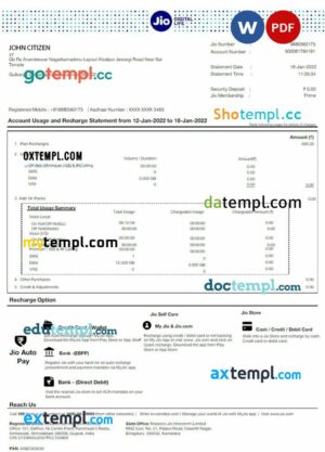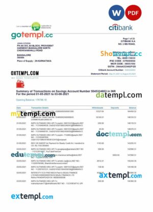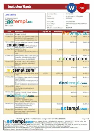 Philippine Bank of The Philippine Islands statement Word and PDF template, 4 pages