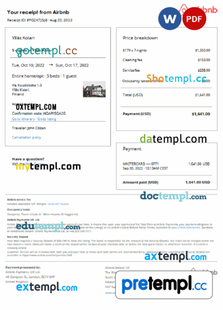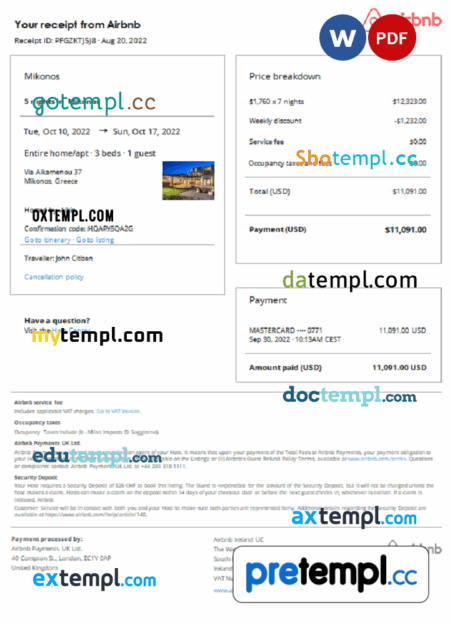 Guatemalan Airbnb booking confirmation Word and PDF example