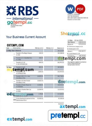 Rathbones Bank company account statement Word and PDF template