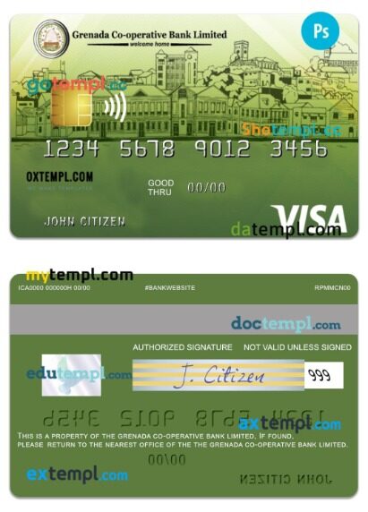 Grenada Co-operative Bank limited visa classic credit card template in PSD format