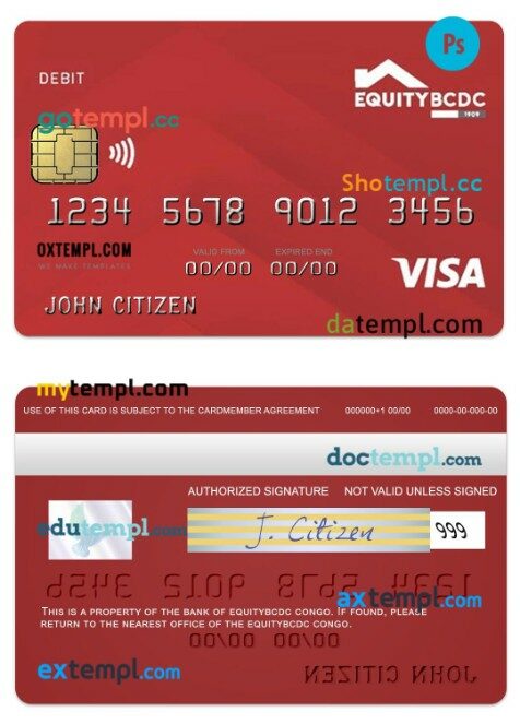 Congo EquityBCDC bank visa classic debit card template in PSD format