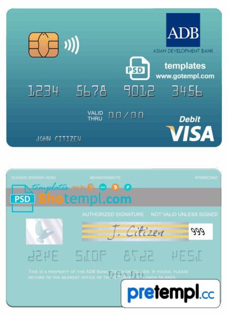 Kirghiz Commercial Bank visa card fully editable example in PSD format