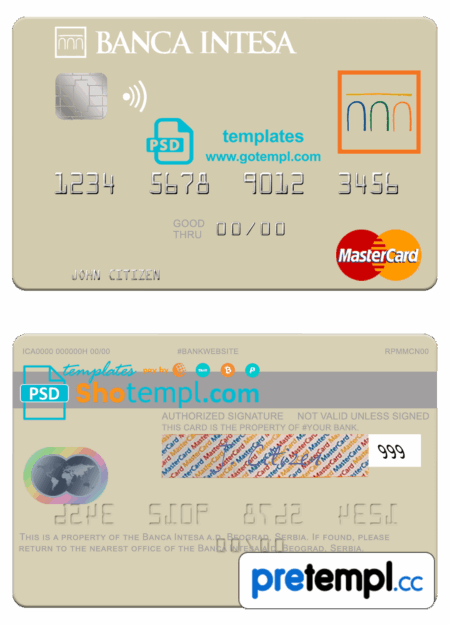 Italian UniCredit Bank mastercard fully editable example in PSD format