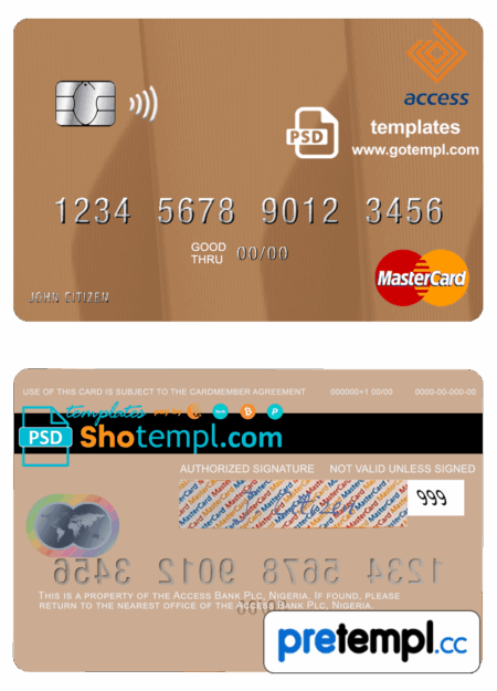Burundian Access bank mastercard credit card example in PSD format, fully editable