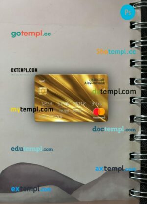 Saudi Arabia Alawwal Bank visa gold card PSD scan and photo-realistic snapshot, 2 in 1