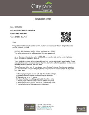 Brovis DD Visoko Auxilary Worker offer letter in Word and Pdf formats