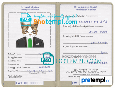 free download Kuwaiti dog (animal, pet) passport PSD example, completely editable