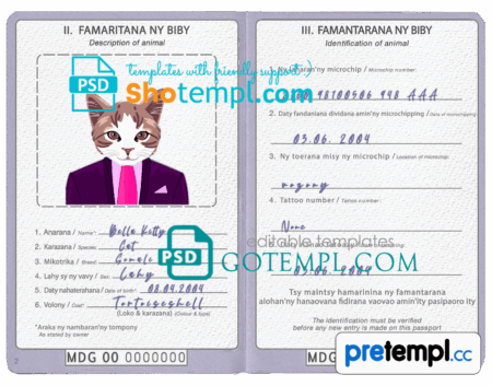 free download Malagasy dog (animal, pet) passport PSD example, fully editable
