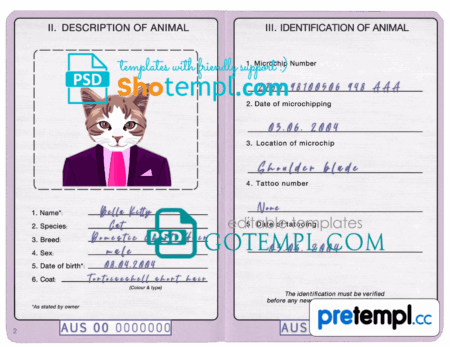 free download Vanuatu cat (animal, pet) passport PSD example, completely editable