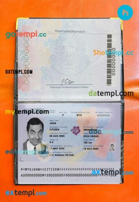 Malaysia passport psd files, editable scan and snapshot sample (2017-present),2 in 1
