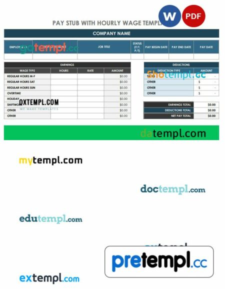 EMPLOYEE earnings statement example Word and PDF format