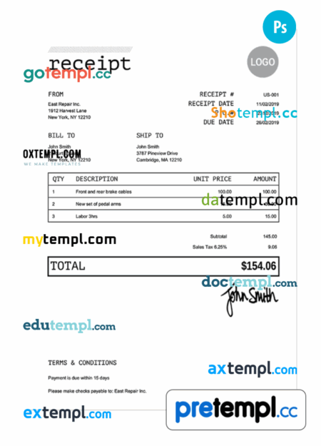 LOVES#207 payment receipt PSD example