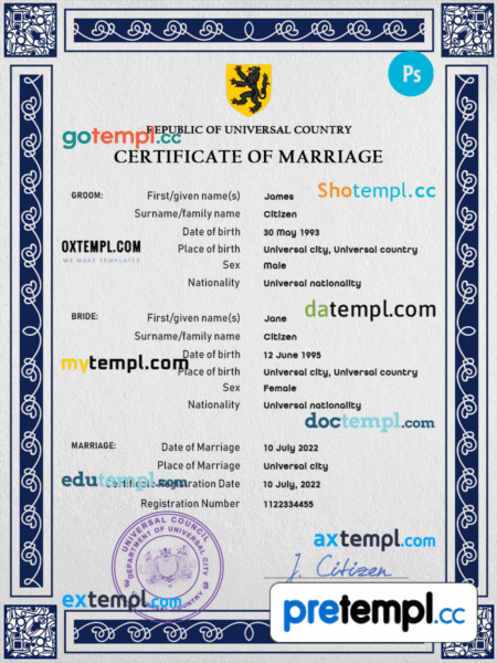 # hypnotic universal marriage certificate Word and PDF example, fully editable