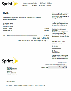 USA T-mobile utility bill template in Word and PDF formats, version 3