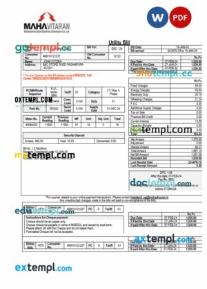 India Maharashtra Electricity utility bill download Word and PDF example