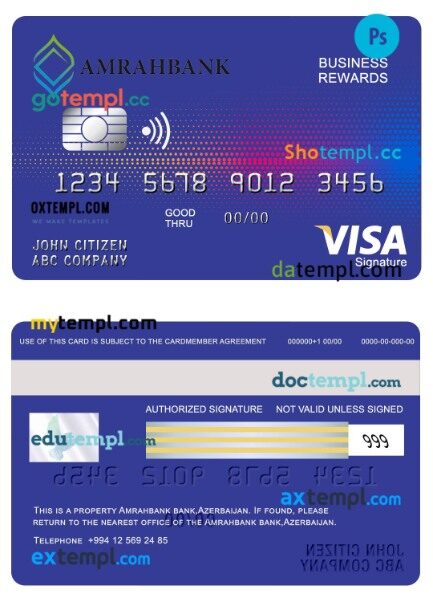 Azerbaijan Amrahbank business rewards visa Signature card PSD download template fully editable with the fonts