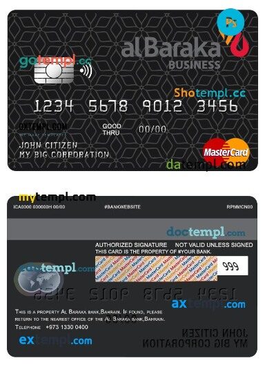 Bahrain Al Baraka bank business mastercard PSD download template fully editable with the fonts