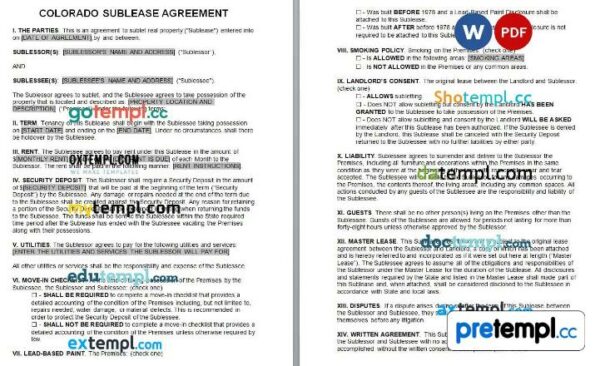 Receive the Colorado Sublease Agreement example in Microsoft Word (.doc) and begin to fill in the necessary info.