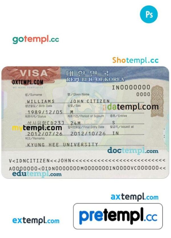 This blank visa sample is in PSD format: you need Photoshop to edit this example.