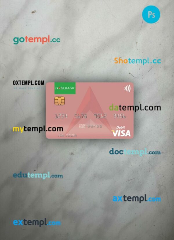 Our Nepal Nabil Bank visa debit card PSD template provides a multi-functional solution with a clean design, providing both the front and back of the card for a realistic look.