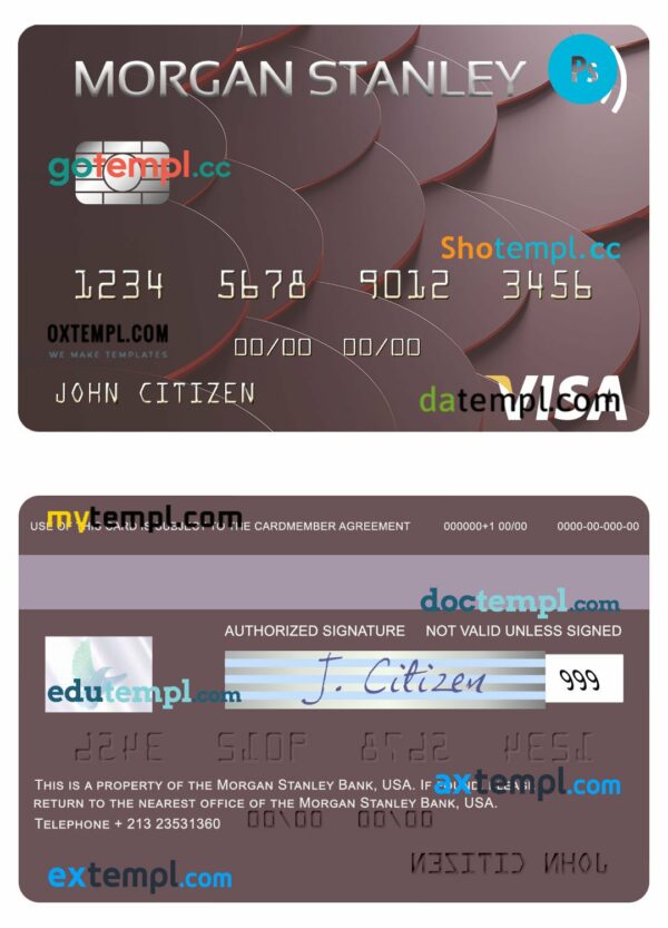 Completely editable USA Morgan Stanley Bank visa card template in PSD format.