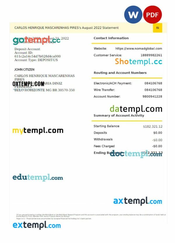 Fully scalable and editable USA NOMAD GLOBAL bank statement 3 – 6 months example at the best price – well organized, named & very easy to use.