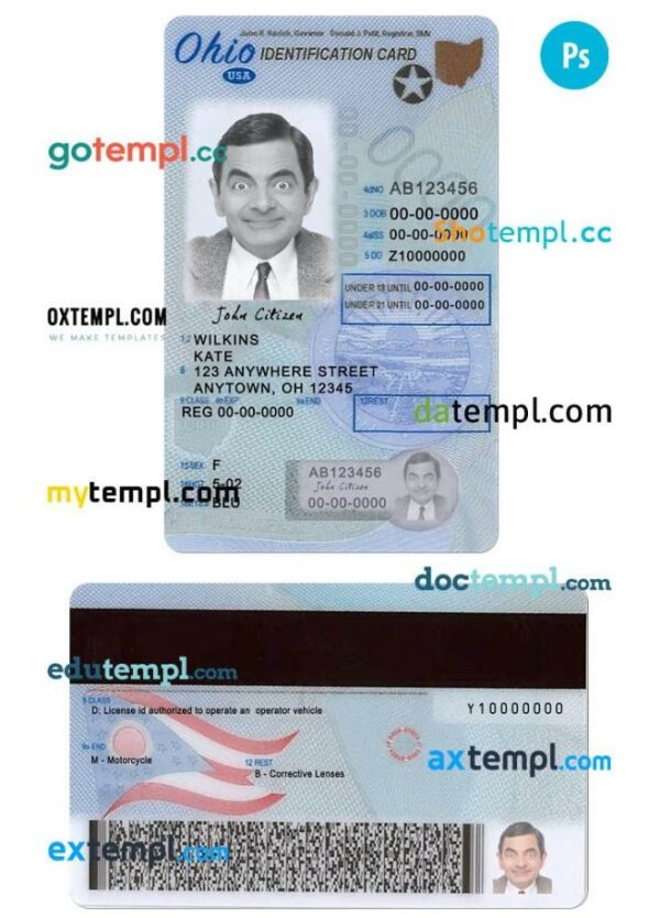 USA Ohio driving license Photoshop template – with a clean design and multi-functional solution.