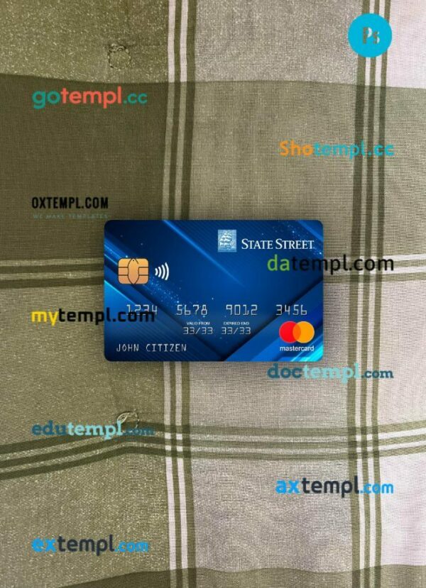 Our USA State Street Corporation bank mastercard PSD template offers a dual option in one convenient package.
